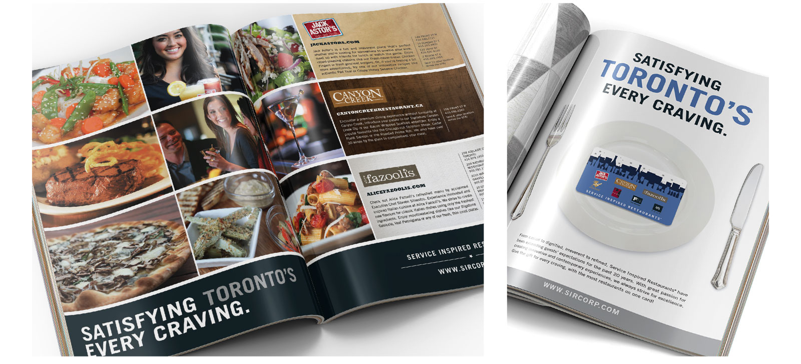 Although the majority of our focus for Service Inspired Restaurants was geared towards the Jack Astor’s brand, on occasion they would reach out to us for creative required for their other offerings. Below are a few examples: a series of ads featuring their long-running Chef Challenge contest appearing in the LCBO’s Food & Drink Magazine, the identities and interior signage for Four and Petit Four and promotional posters for special events at Reds Bistro & Wine Bar.